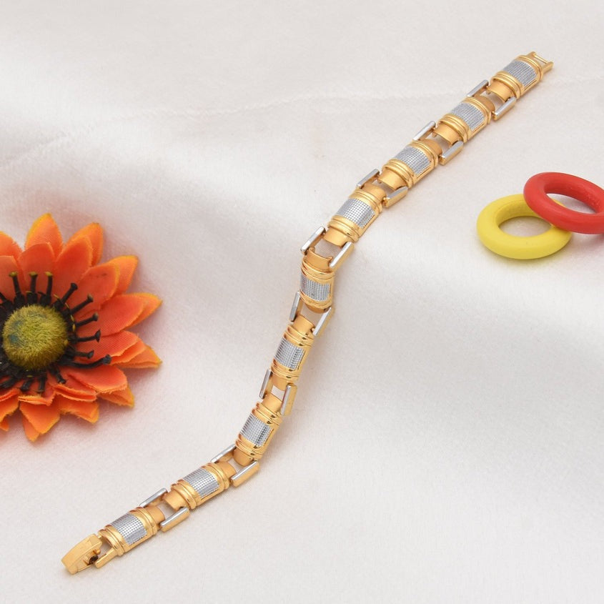 Attention-Getting Design Golden & Silver Color Bracelet for Men - Style A369