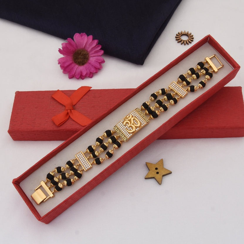 Om Etched Design High-Quality Gold Plated Rudraksha Bracelet for Men - Style C774