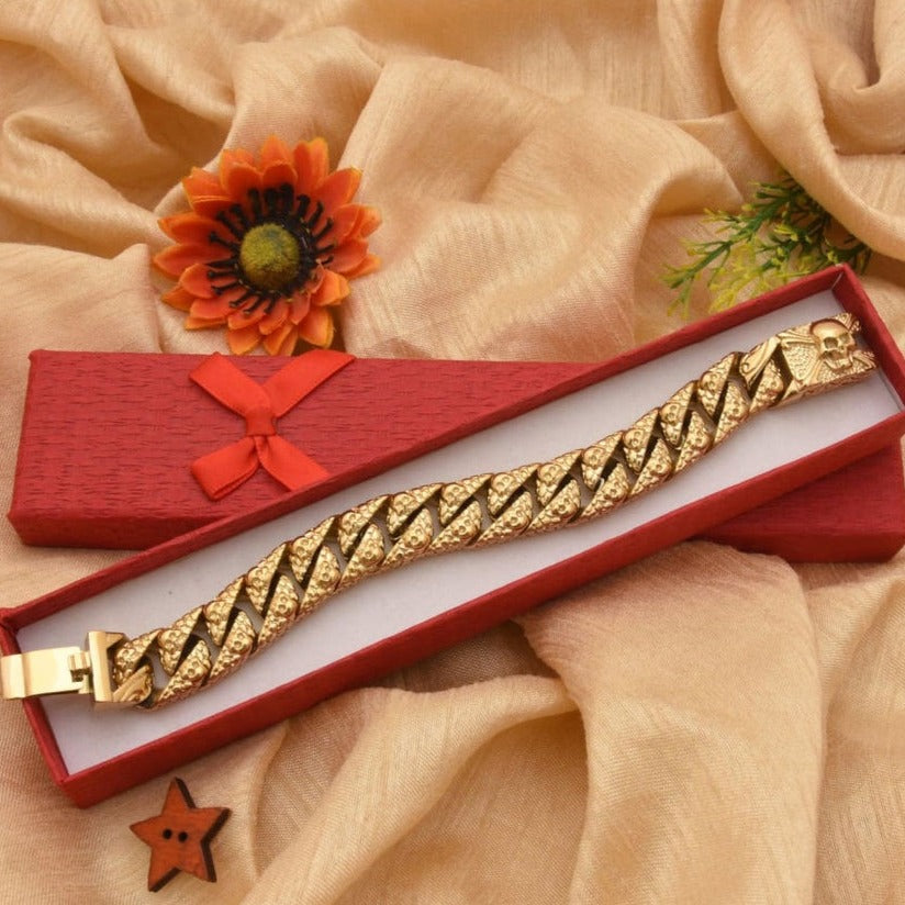 Skull Stunning Design Superior Quality Golden Color Bracelet for Men - Style B952